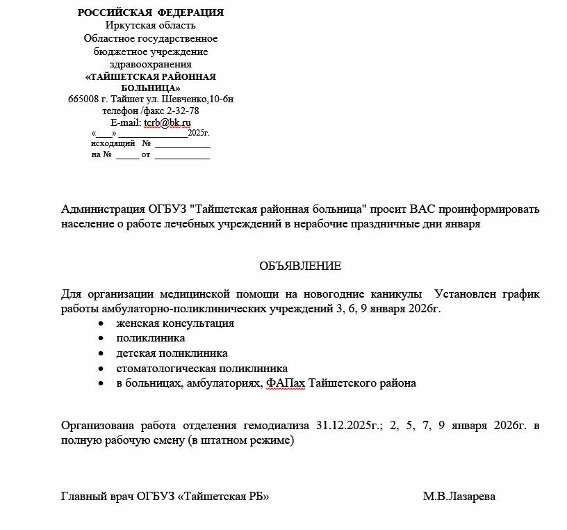 областное государственное бюджетное учреждение здравоохранения "Тайшетская районная больница"
