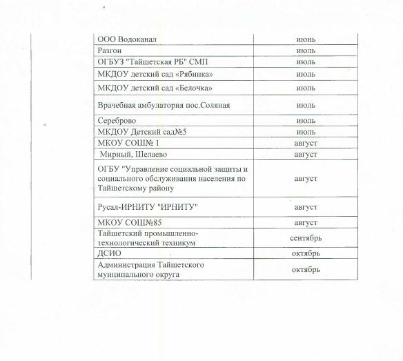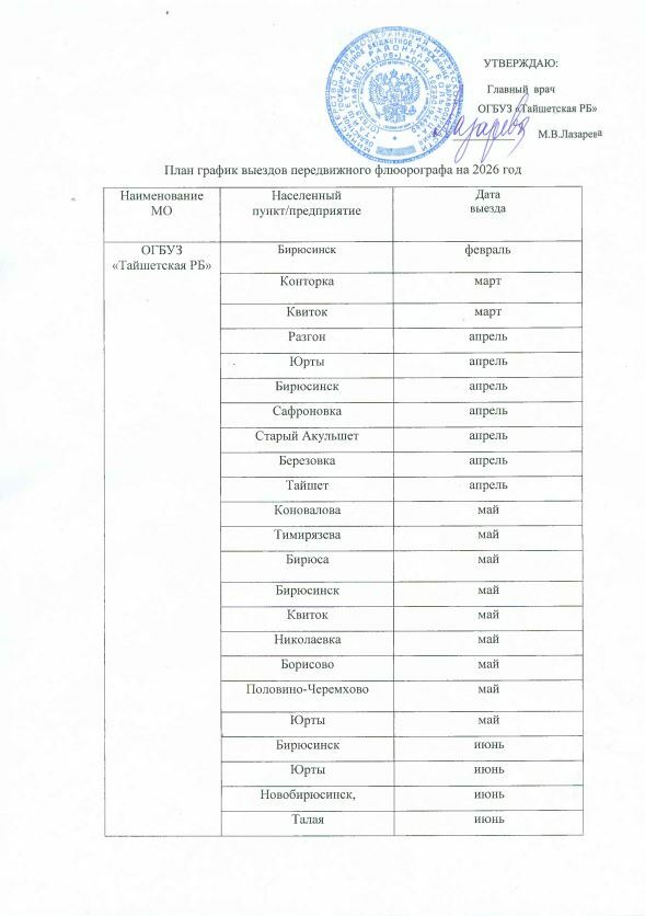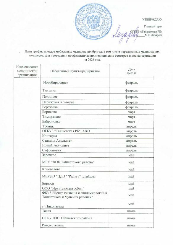 ОГБУЗ Тайшетская РБ График работы по диспансеризации и профосмотрам
