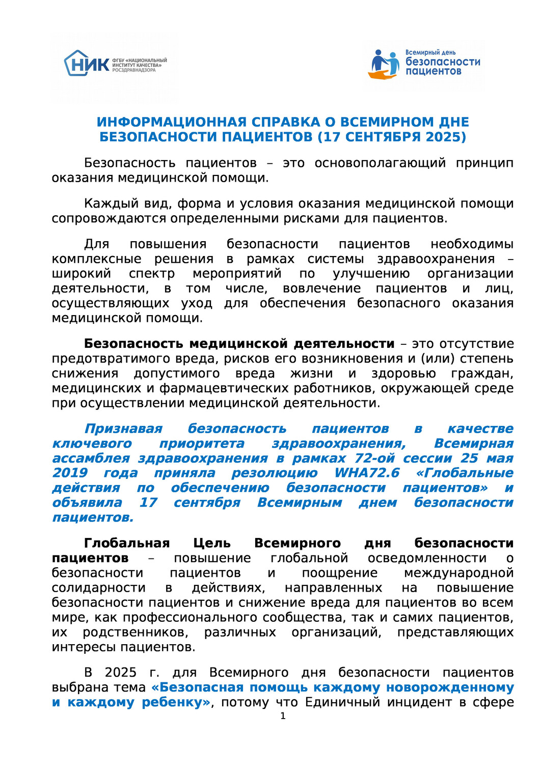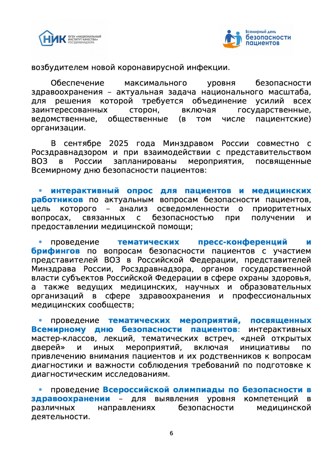 МЕТОДИЧЕСКИЕ РЕКОМЕНДАЦИИ ПО ПРОВЕДЕНИЮ ВСЕМИРНОГО ДНЯ БЕЗОПАСНОСТИ ПАЦИЕНТОВ В РОССИЙСКОЙ ФЕДЕРАЦИИ 2025 ГОДУ